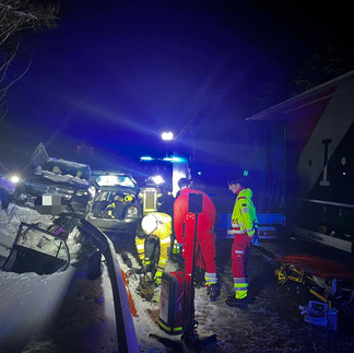 Im Einsatz: MZF, TLF, LFB, LAST, 2x Rettungswagen, Notarzt, Einsatzleitung Rotes Kreuz, mehrere Polizeistreifen, Abschleppunternehmen, Winterdienst.
